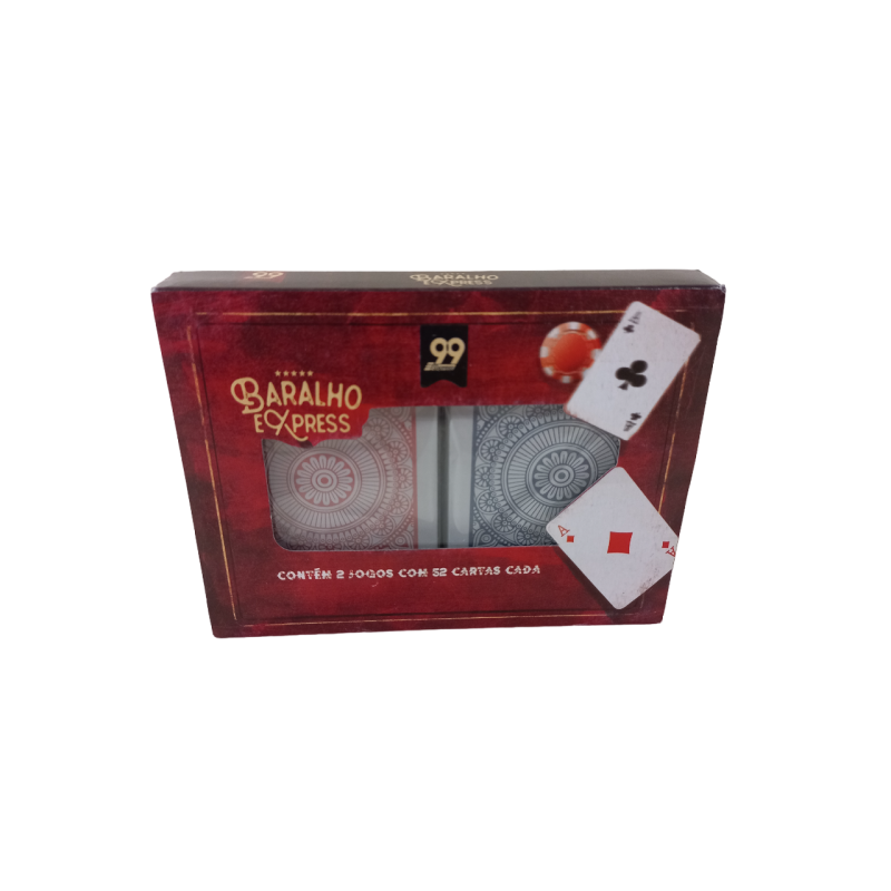 Baralho Express Duplo é um baralho de cartas que contém duas vezes mais cartas do que um baralho tradicional. Em vez de 52 cartas, um Baralho Express Duplo contém 104 cartas, com dois conjuntos completos de cartas numeradas de 1 a 13 em quatro naipes, feitas de plástico.