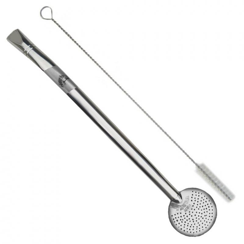 Bomba desmontável de inox, com detalhe Cavalo Crioulo. Acompanha escovinha.