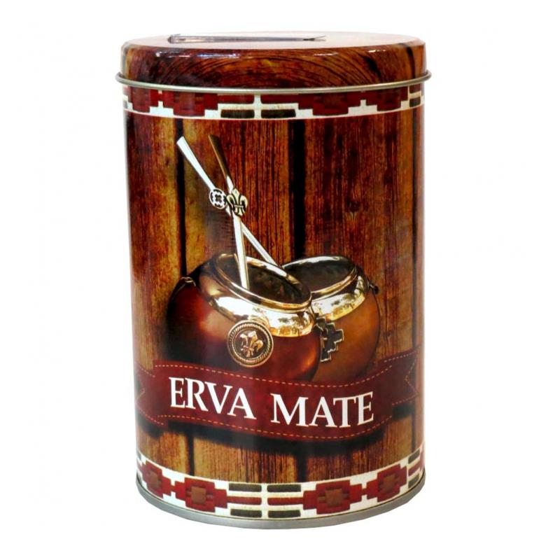A porta erva lata de 500g acompanhada por duas cuias e dois cavalos redondos é um conjunto de acessórios para a tradicional infusão de chimarrão. Essa combinação permite armazenar a erva-mate de forma prática e conveniente, mantendo-a fresca e preservando seu sabor autêntico.