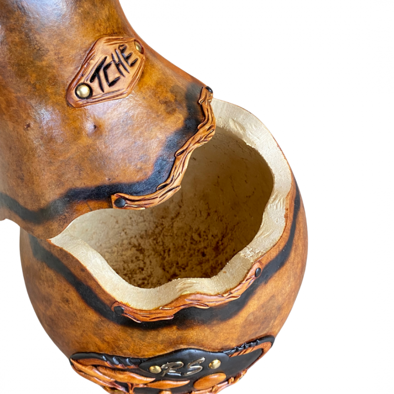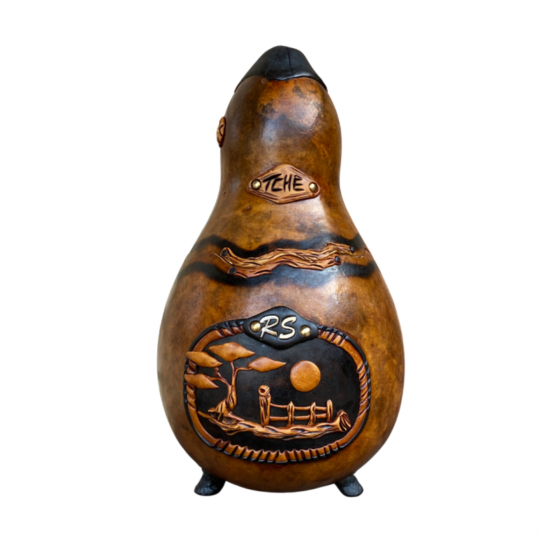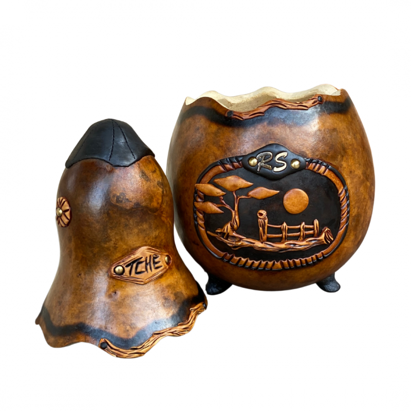 Com acabamento bem trabalhado, é resistente, prático e carrega a essência da cultura gaúcha. Perfeito para acompanhar o mate em casa, no galpão ou nas idas ao campo.