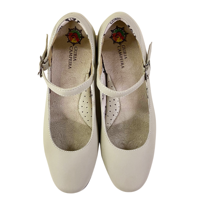 A sapatilha adulta da marca Guria Campeira é um sapato tradicionalmente usado por prenda em festividades gaúchas, confeccionado com couro legítimo para garantir qualidade e autenticidade. Seu interior é cuidadosamente forrado para proporcionar conforto durante o uso prolongado, e a palmilha pode variar de acordo com o modelo, assegurando suporte e amortecimento adequados. O salto, um dos principais atributos desta sapatilha, também é forrado em couro e mede aproximadamente 3 centímetros, oferecendo uma elevação elegante e confortável.