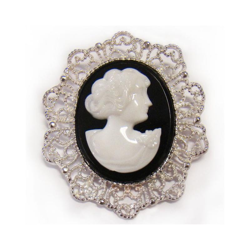 Camafeu Rendado Gr Prata Preto Branco Ver maior